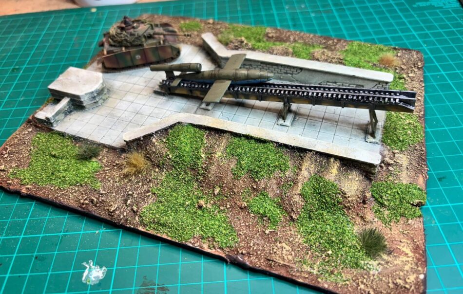 Unfortunately, decals are not included — they’ve been gradually disappearing from Battlefront boxes — and there’s no scenic terrain included either. The old Open Fire sets came with the now “famous” V1 rocket: useless in terms of gameplay but great as a terrain piece, like this one: