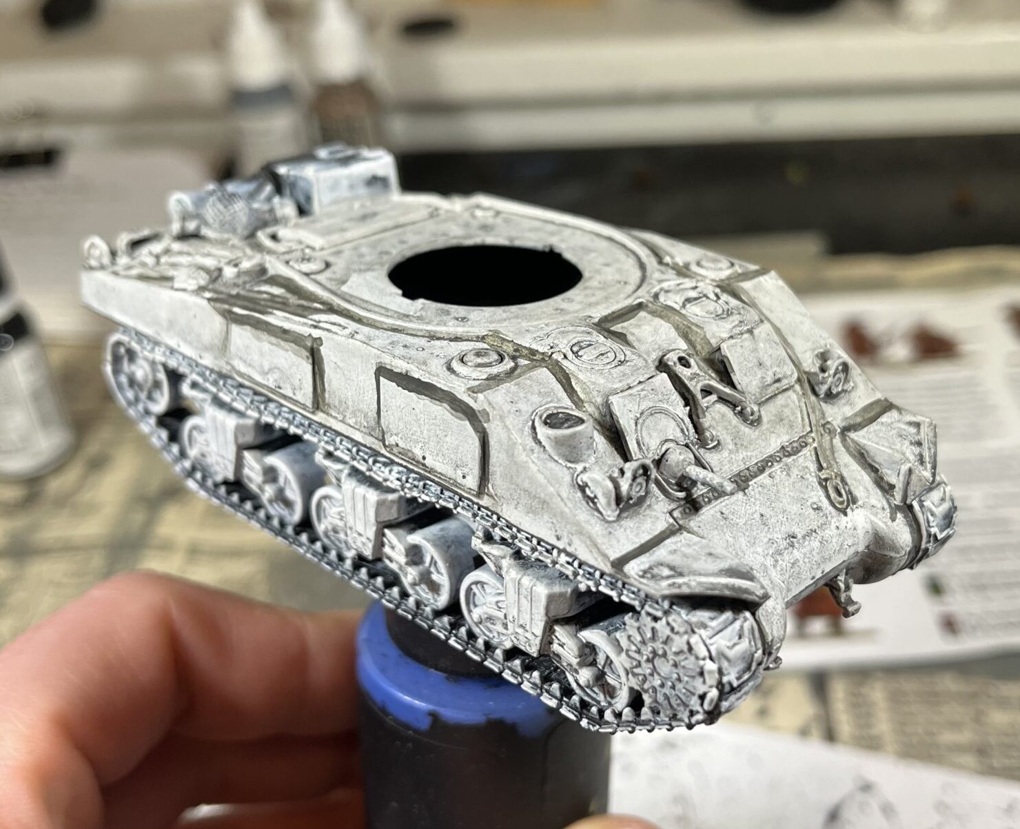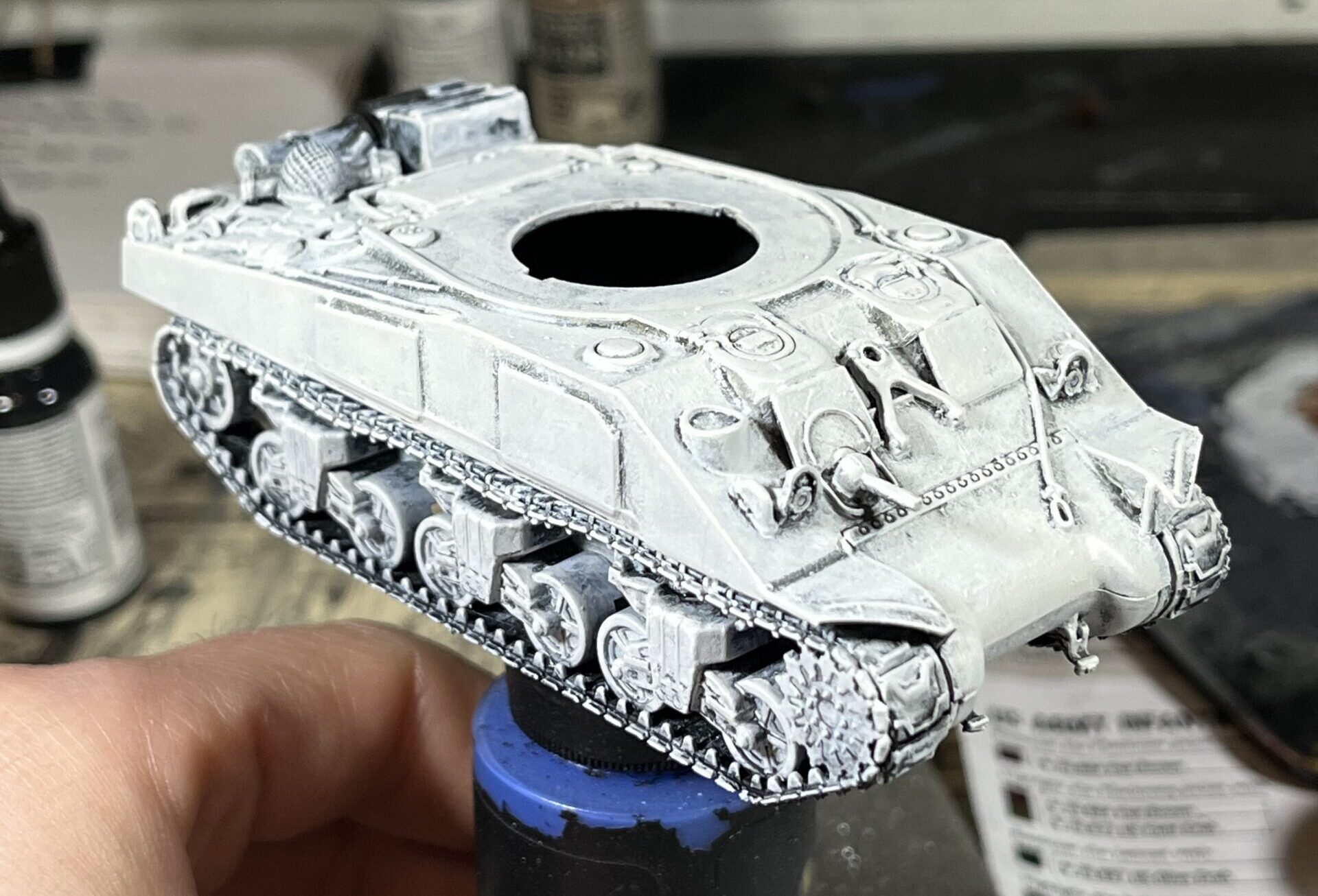 Perusing Google Images for Sherman tanks during the Battle of the Bulge resulted in a minority of images showing whitewashed American tanks. A few did pop up the longer I spent scrolling. With at least a few examples documented, I decided a precedent existed and committed to painting my armor support for my winter Americans with whitewashed camouflage.