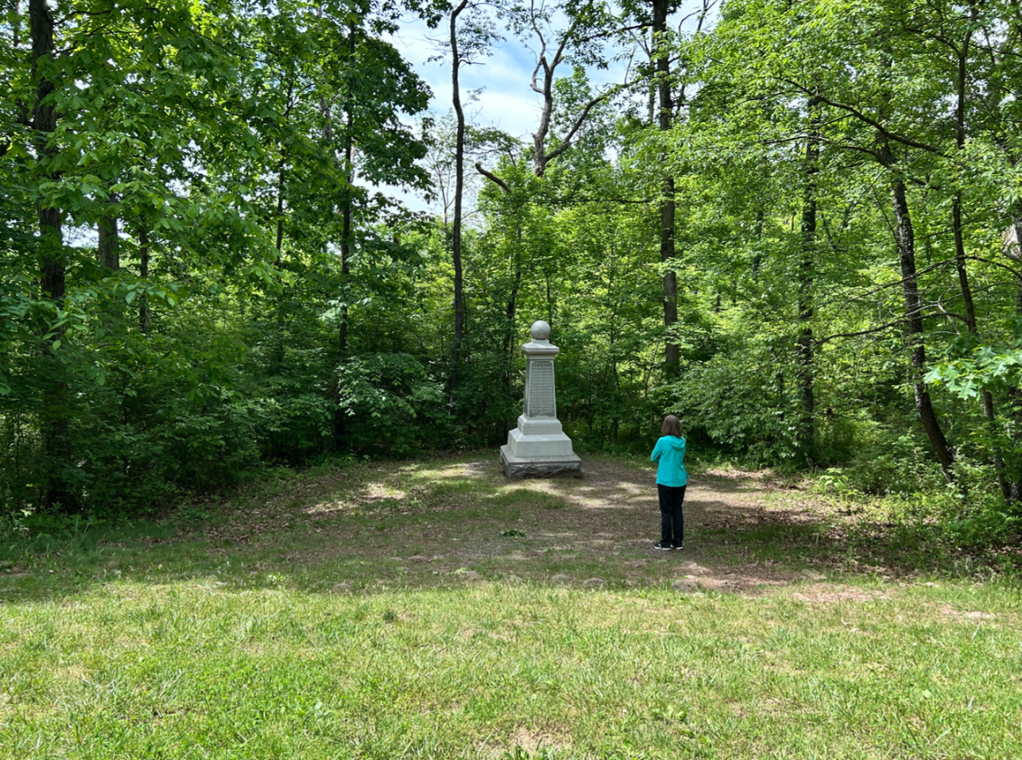 Because we’d missed it (darn audio tour! Not telling me about what I came to learn!), I made a pledge to be on the lookout for the 19th Indiana monuments as we drove. Since we didn’t find the 19th’s marker on day one, we made it a point to explore the drive through Herbst woods on the north end of McPherson’s Ridge. I used GoogleMaps to pinpoint the location of the marker, and still drove by it twice before my wife spotted it.