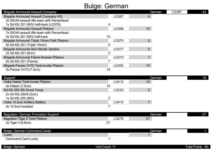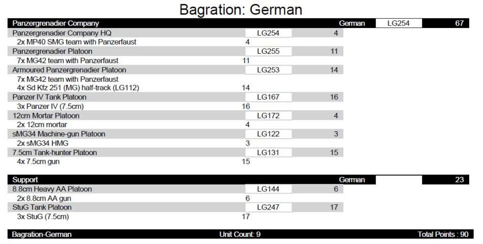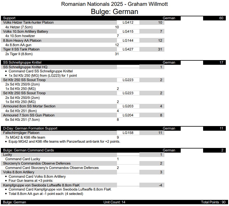 Each tournament in the Series has its own rules — the only requirement is that there must be five games and the scoring must follow Battlefront’s system. Quentin decided to exclude Berlin Germans, which many players consider to have unbalanced point values. In addition, the format allows only 10 units, no repeated formations, and “just” 90 points. A great opportunity to field some lists different from the usual 100-point builds. You can find all the lists here