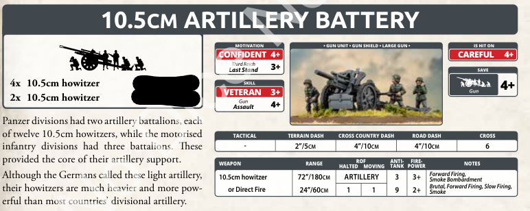 Rounding out the support is the long-serving 10.5cm gun. If you’ve seen one German book, you’ve seen these. Cheap and effective long-range artillery.