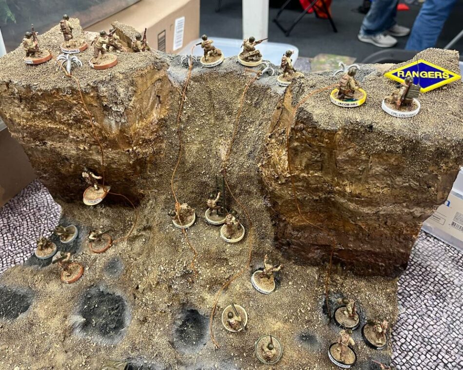 So he went full swing into the 2nd Ranger Battalion for D-Day, complete with a display board with grappling hooks for ascending the cliffs, landing craft to showcase the men (they were not part of the army), and a painted fighter for his Air Observer to call in: