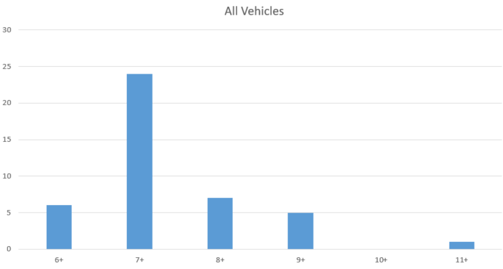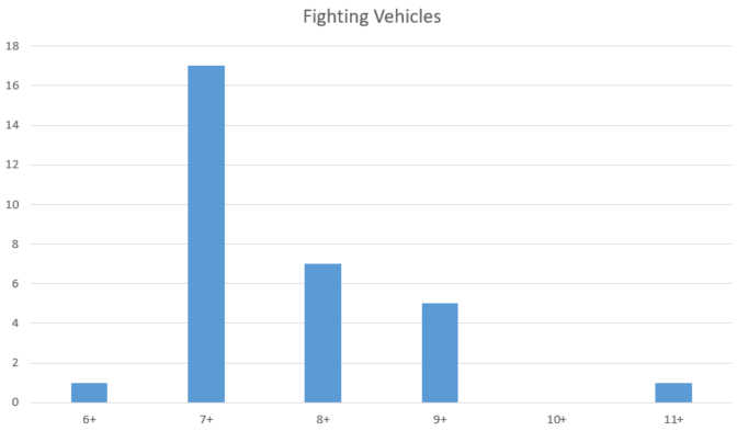 The fighting vehicles at this tournament leaned towards the smaller sizes with over half of the combat vehicles weighing in at DV 7+.