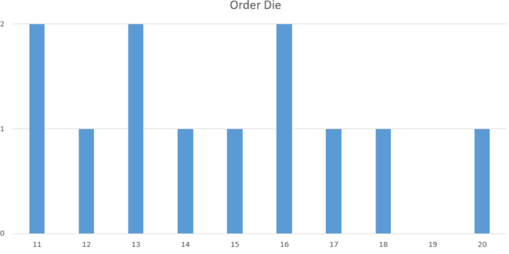 There was an interesting spread of Order Die totals ranging from a low of 11 to a high of 20. No clear concentration.