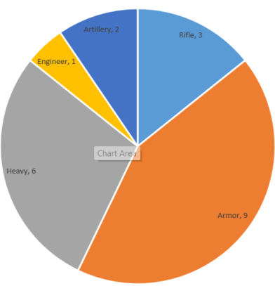 Once you remove 12 compulsory Rifle Platoons you can see what optional platoons were taken. Little surprise that Armor was the preferred add on.
