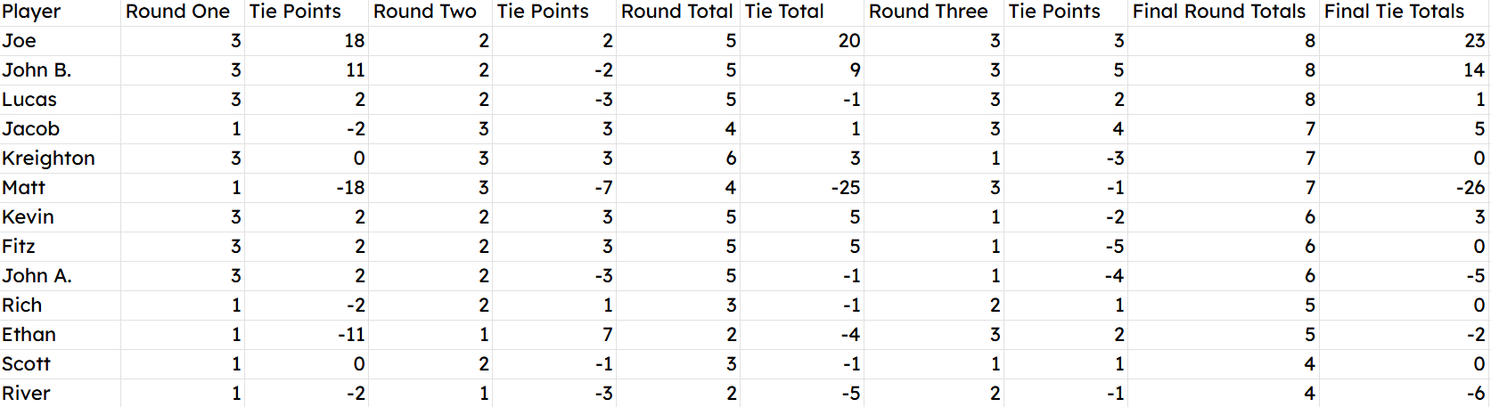 Kalissa went on to create a special award for Matt due to the number of units Matt lost throughout the day.  She enjoys creating fun, unique awards to be distributed at the end of the tournament.  They always earn laughs and approval from the players.  A truly nice addition to the tournament as a whole.